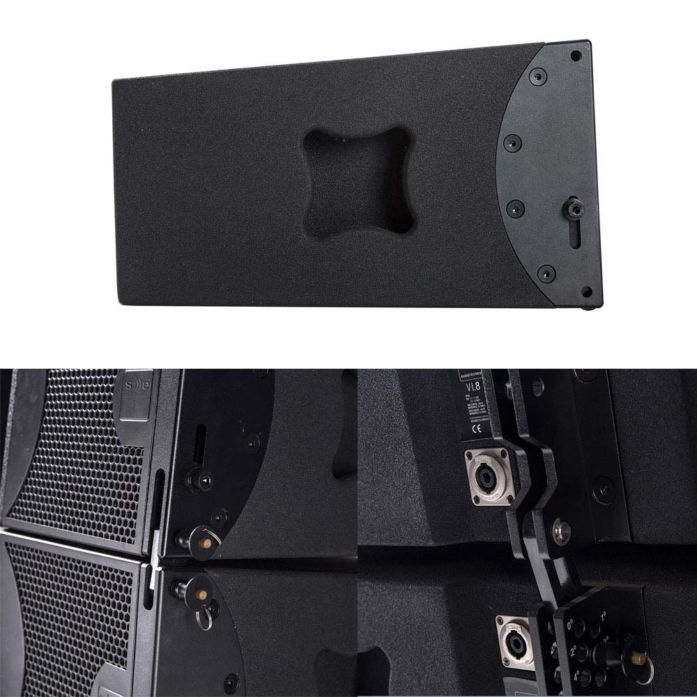 V-L8是一款双8" 可调角度的吊挂线阵,主要为音乐会等音响扩声系统和现场表演而设计,满足从小型到大型室内和室外场地扩声,每只音箱有650W额定操作功率。